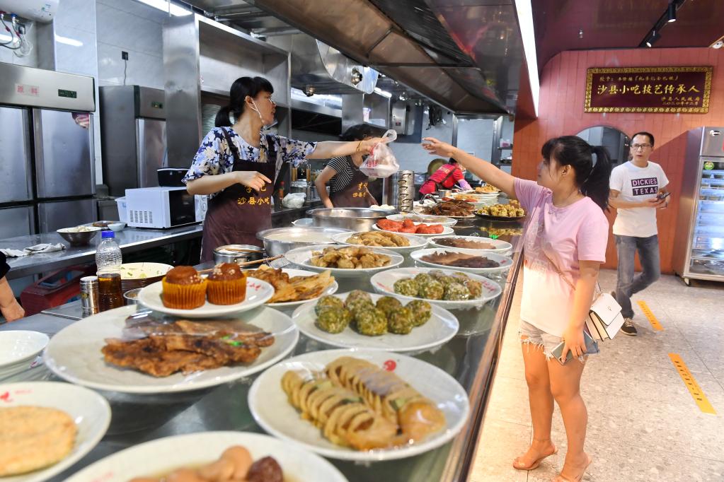 游客在三明市沙縣區的一家小吃店內選購種類豐盛的沙縣小吃(2021年6月10日攝)。新華社記者林善傳攝